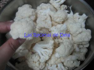 Cortamos los ramos de coliflor en porciones pequeñas.