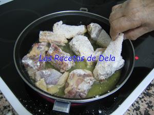 Pasamos por harina la gallina, como veis utilizo una bolsa para ello, así es más cómodo y no manchamos nada, además de que se emplea solamente la harina que necesita.