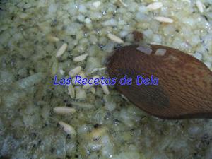 Volcamos la cebolla a la cazuela, bien escurrido del aceite.