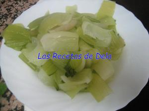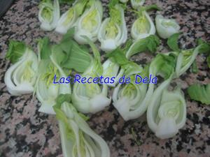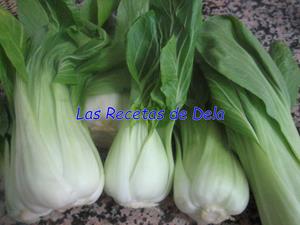 Estas acelgas son más suaves que las que solemos utilizar, se conocen también por pak-choi. Necesitan menos tiempo de cocción y son una fuente de vitaminas y minerales, sobre todo en calcio.se pueden hacer sopas, purés, salteadas, asadas, e incluso se pueden comer en crudo para ensaladas. Yo os la presento rehogadas con unas láminas de ajo, ricas, ricas.
