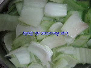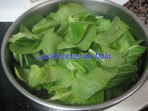 Primero cuezo en agua con sal los tallos, cuando veo que están tiernos, unos 15 minutos más o menos, los saco con una espumadera del agua.