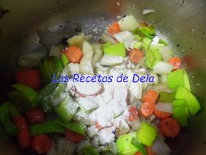 Añadimos una cucharada rasa de harina y volvemos a rehogar.