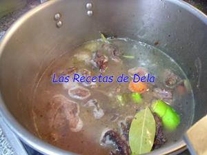Una vez que esté la carne tierna la retiramos a otra cacerola, solo la carne. Luego colamos el resto por un colador, que quede solo el líquido. Dejamos que cueza un poco así hasta conseguir el espesor que nos guste. Probaremos de sal también y si hace falta se añade.