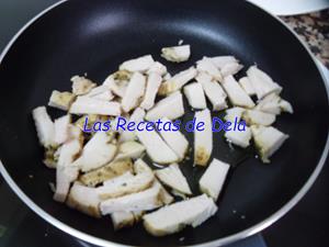 Cortamos en bastones el fiambre y lo salteamos ligeramente con un poco de aceite.