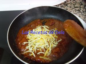 En una sartén ponemos el tomate a calentar con otro poco de queso rallado. Mezclamos bien con lo que teníamos hecho antes.
