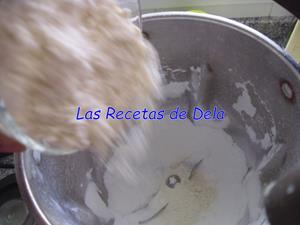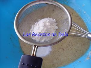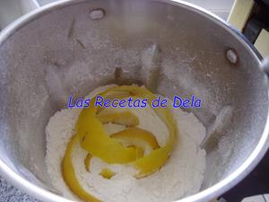 Por otro lado he hecho lo mismo con el azúcar, ver este consejo, junto con la harina y la cáscara de limón. Si se hace de la forma tradicional en el bol ponemos el azúcar, la harina y la ralladura de limón después de poner los huevos, la leche y el aceite, que sería después del siguiente paso.