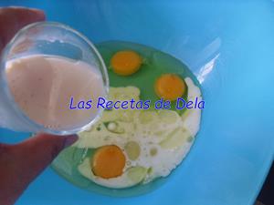 En un bol ponemos los huevos junto con el aceite y la leche. Batimos bien todo.