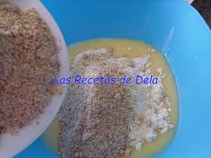 Incorporamos la mezcla de azúcar, harina y cáscara de limón y la almendra molida. Mezclamos bien.
