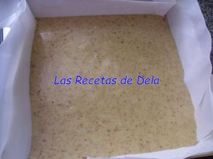 El horno lo tendremos veinte minutos antes encendido a 180 ºC. Forramos el molde con papel de hornear, ver consejo. Volcamos la mezcla y metemos al horno unos 35 minutos.
