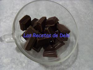 Troceamos el chocolate y lo metemos al microondas por intervalos cortos de tiempo, y a no muy alta temperatura hasta que esté derretido.