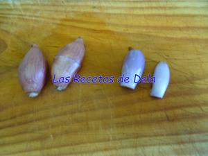 Pelamos un par de chalotas y las cortamos en rodajas muy finas. Reservamos.
