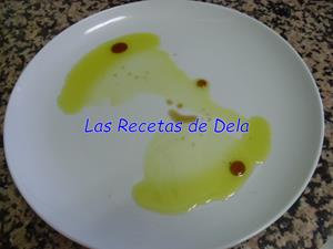 En la fuente en la que vamos a poner el carpaccio de tomate vamos a poner en la base un pequeño aliño. Aceite, vinagre y sal y lo mezclamos bien.