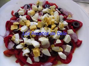 Que ricas las ensaladas, y a mí personalmente, las de pimientos asados me encantan, luego queda un caldito para mojar pan delicioso. Es cierto que lleva su tiempo, pero se puede aprovechar el horno para hacer más cantidad de pimientos asados y guardarlos en tandas y en el congelador, para otras ocasiones.