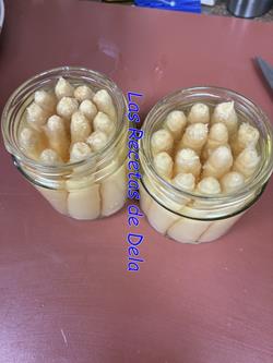 Para esta cantidad de cocochas utilizó el caldo de estos dos envases de espárragos. Los espárragos los puso como uno de los entrantes con una salsa de mayonesa casera, preparada por ella, de esta forma los utiliza en el mismo día.