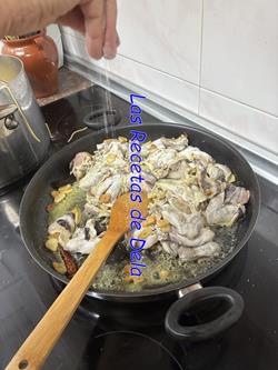 Una vez que se han dorado añadimos las cocochas. Volvemos a rehogar de nuevo.