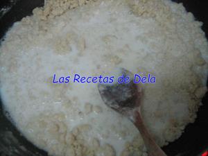 Se va incorporando poco a poco la leche, removiendo continuamente. Si se ha optado por batir la cebolla antes, se le incorpora también.