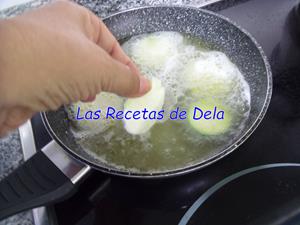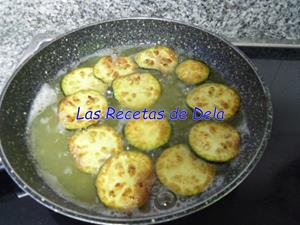 Vamos introduciendo, con mucho cuidado, las rodajas enharinadas de una en una.